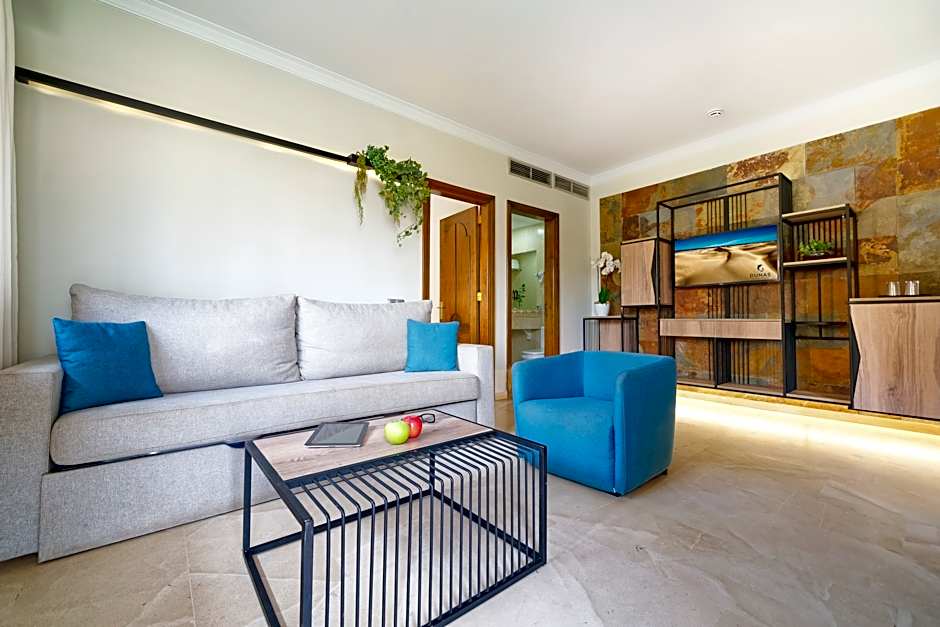 Het dineren ter plaatse heeft een moderne ambiance in Restaurant Suites&Villas, waar internationale gerechten worden geserveerd naast een stijlvolle bar voor informele avonden. Voor eenvoudig verkennen is er een gratis pendeldienst om de omgeving te ontdekken; een luchthavenshuttle en toegang tot de golfbaan zijn tegen betaling beschikbaar.